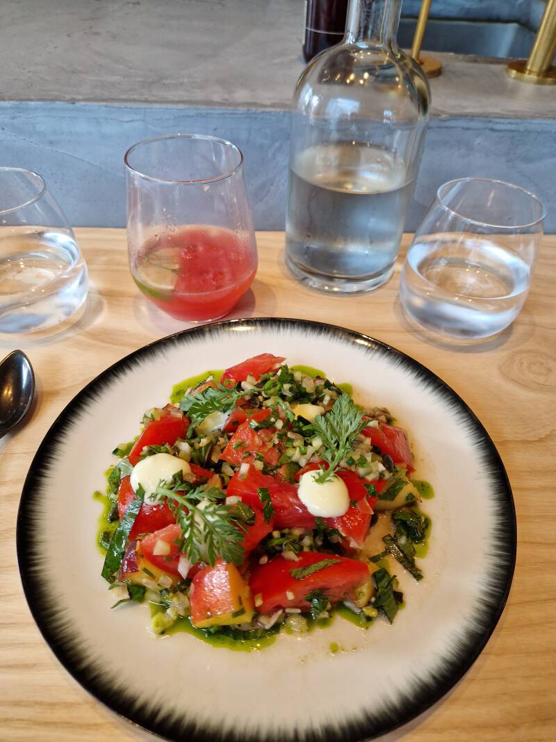 Dit restaurant is een vega en vegan restaurant met een michelinster. We konden het eerst niet goed vinden, heel raar voor een restaurant met ster. Het was een beetje een achteraf weggemoffeld en niet echt gezellig ogend gebouw. Later bleek dat het gevestigd was in een oude (underground) club, echt zo tof! In 2018 gekozen tot beste vega restaurant van Berlijn en sinds die tijd ook in het bezit van een Michelin ster. Ze bieden ook een volledig vegan menu. We gingen voor de magnificient seven, maar je kunt ook voor 5 of 6 gangen gaan. Het was echt een fantastische ervaring.