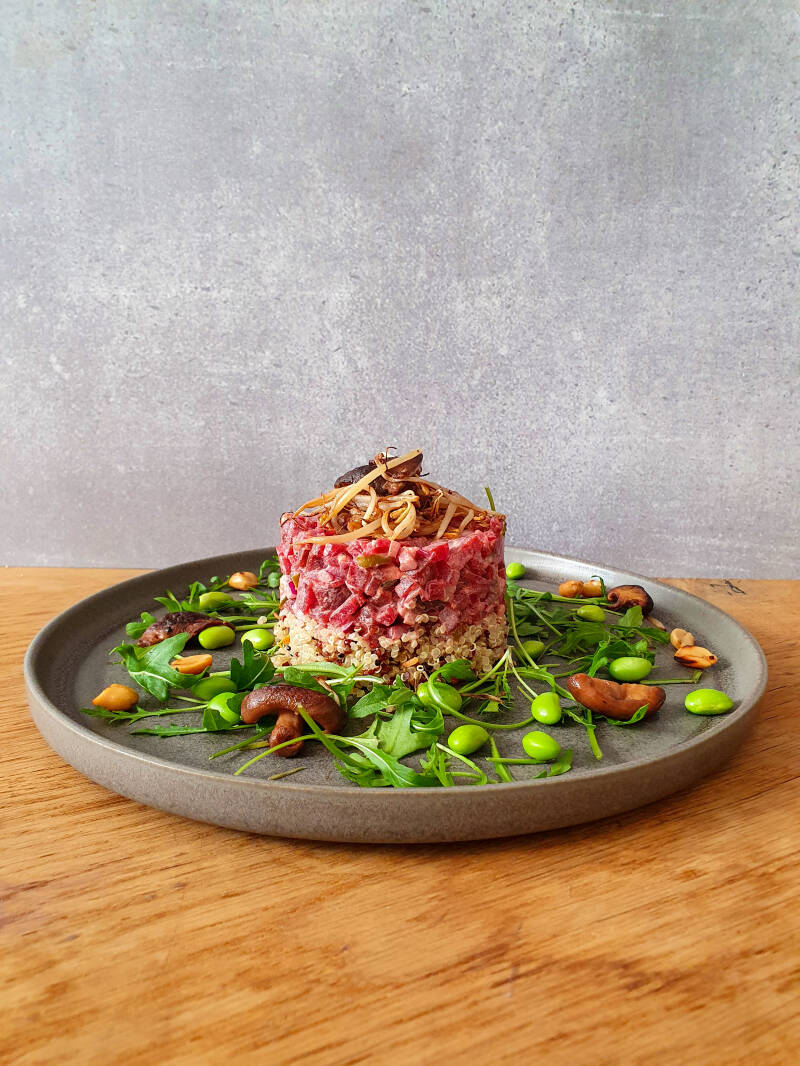 De Aziatische steak tartaar was altijd het favoriete gerechtje van Willem. Daar moest dus een vegan variant op komen, dat snap je wel. Hier is het resultaat, lekkerder, gezonder, duurzamer en zonder leed voor de koetjes. Goed voor de lunch, maar ook zeker niet verkeerd als voorgerechtje voor een feestelijk diner. Geniet ervan!