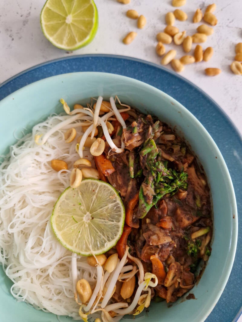 Zwarte bonensaus is echt heerlijk bij wokgerechten en super simpel om zelf te maken. Vol van smaak en hoog in eiwitten, vitamines en mineralen. Je kunt evt. nog wokstukjes of tofu toevoegen aan het gerecht voor extra eiwitten. Wij gebruiken vandaag paprika, wortel en bimi, maar je kunt uiteraard alle soorten groente gebruiken. Wel heel lekker met pinda en taugé on top! Eet smakelijk.